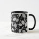 Um conjunto de bolas de futebol de cinza e de notas de música branca contra fundo negro é um design de música único para músicos, professores de música e estudantes.