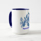 Un motif floral élégant et enchanteur, composé de trois roses bleues luxuriantes aux pétales finement dessinés et aux feuilles d'un bleu profond. La palette monochrome bleue crée une atmosphère sophistiquée et poétique, rehaussée par la légende en français « Nuance Bleue ». Idéal pour les amateurs de fleurs qui osent se démarquer.