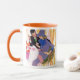 Artista: Mulher de Joe DeMers | em um café roxo do bebendo do vestido e do chapéu em uma mesa com um homem que fuma um cigarro
