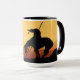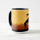 O fim da trilha em silhueta na caneca de café do pôr do sol