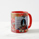 Uma fotografia do Presente de Natal e uma Caixa de Livro de Música com uma Igreja azul no meio. Isso é brilhante e colorido em um café MUG. Isso foi em Hutchinson Kansas EUA.
