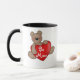 Um urso de ursinho guardara um coração vermelho grande que leia "esteja meu" em uma caneca do dia dos namorados que faça um grande presente para qualquer um que é seus namorados especiais!
