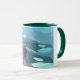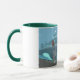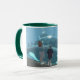 Esta capitulação painterly de duas crianças como olham duas baleias da orca nadar o passado tem uma qualidade calma, sonhadora.