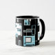 Caneca de blocos preta, branca e turquesa para seus momentos especiais!