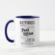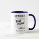 Uma caneca de café de dois tons para seu colega de trabalho ou chefe que se aposentará após muitos anos de excelente serviço. A design é moderna e a redação diz: "Aposentado do Gabinete de Posto. Cada hora é feliz" Faz um presente perfeito para seu melhor amigo ou colega de trabalho. Adicionar um nome clicando no botão "Personalizar"