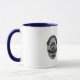O policial Mug é totalmente personalizável e pode ser usado como presente de aniversário único para amigos, família ou para qualquer outro fim. Projetado pela polícia Norman.R., logotipo fino de linha azul, polícia, presente policial personalizado azul, profissional para ela, legal vintage retro rustic classy, moderna elegante na moda trendy boho, festa de aposentadoria de aniversário, logotipo clássico de negócios corporativos, canecas de café iniciais monograma,