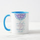 Esta caneca apresenta uma mandala roxa e azul de ombre com a citação "inalar a confiança, exalar a dúvida." Esta caneca é o presente perfeito para seu amigo, membro da família ou amado que está interessado em curar mantras, meditação, yoga e bem-estar geral.