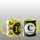 Nossa, você tem 16 caneca de café. Amarelo e preto, com setas, círculos, nome e monograma Ideia de presente para 16 anos.