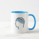 Uma silhueta solteiro com ondas oceânicas ascensões do topo da cabeça, simbolizando pensamentos e emoções profundas. Linhas de abstrato limpas com curvas de fluxo suave. Equilíbrio perfeito entre estética intelectual e emocional.
