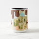 Onde está o Glacé? Caneca com Beatrix e Benedict em fundo de xadrez.