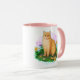 An original design illustration I created of an orange tabby cat, sitting in the flower patch!