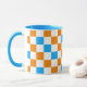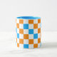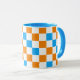 Caneca Orange White Blue Checkered Pattern Design