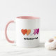 Caneca personalizável com design de coração em cores de bandeira do orgulho lésbico; design de orgulho laranja, branco e rosa; com um modelo de texto personalizável