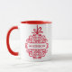Celebrar a época de férias com esta elegante e personalizada caneca de Natal, com um design de ornamento de ornamentado em vermelho festivo. O intrincado ornamento envolve um nome personalizável, fazer-o um presente perfeito para os entes queridos ou um especial tratamento sazonal para si mesmo. O interior vermelho da caneca complementa lindamente o design de ornamento, adicionando um toque extra de alegria de feriado. Ideal para café, chá ou cacau quente, essa caneca traz um toque personalizado a cada gole durante as férias. Excelente para a manhã de Natal ou reuniões festivas, é uma encantadora manutenção que pode ser apreciada ano após ano.