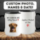 Celebre seu dia especial com um toque de amor peludo! Esta caneca personalizada apresenta a adorável frase "Meus Humanos estão se casando" e inclui a foto de seu animal de estimação de um lado, com seus nomes e ano de casamento do outro. Um presente perfeito de noivado para amantes de cães ou um anúncio de casamento divertido de seu familiar de quatro patas. Personalize-o com o rosto de seu cachorro e seus próprios nomes + data para torná-lo verdadeiramente seu!* Nota: Você pode carregar facilmente uma foto clara do seu cachorro. Para remover o fundo, clique em "Editar usando a ferramenta design" e selecione "Remover BG".