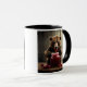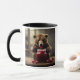 La lumière douce éclaire son pelage épais, créant une ambiance chaleureuse et rustique. Derrière lui, une cuisine en bois laisse apparaître quelques étagères remplies de pots et d’ustensiles. Tout dans cette image évoque la gourmandise, le plaisir simple et l’amour du sucré.