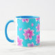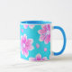 Caneca Padrão de Flor Simples Azul e Rosa