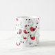 Uma linda caneca com padrão de pássaro. O padrão das aves é constituído por aves bonitinhas de cor, na sua maioria de uma paleta de cor vermelha/rosa/morango. Entre os pássaros há pequenas vinhas de folhas. É um tema/vibração central do país/cabine do excelente. Caneca de algodão. Todos os designs são originais e criados por mim em Impressões Brighton