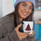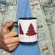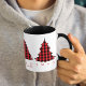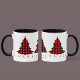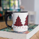 Esta design apresenta um costume de árvores bonitinhas de Natal, uma feliz festiva de inverno, uma típica tipografia simples de Natal, um cheque de xadrez de inverno, um presente de natal personalizado divertido, uma caneca de café de bebida de Natal, com uma simples inscrição minimalista, um texto moderno de fonte contemporânea, um vermelho de Natal e preto, um padrão simples de xadrez de Natal