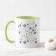 Flores de cor-de-água roxas e verdes em fundo branco de Jenn Steffen para Studio Posies. Fácil personalizar o nome na caneca também.