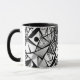 Esta é uma caneca de café da Habatour Creations, cheia de um autêntico padrão digital abstrato geométrico de design em cinzas Direitos autorais de @Habatour Creations Copiar ou usar sem permissão é ilegal