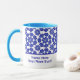 Esta caneca de na moda apresenta charmes azuis de mau, organizados em um design floral gracioso, juntamente com um campo de texto personalizável para seu nome ou toque pessoal. Tire seu dia com um café quente, um toque de elegância, e uma dose de energia positiva. Para pedidos ou consultas especiais, contacte o artista em wafadahdalcreates@gmail.com. © Wafa Y. Dahdal - Todos os direitos reservados. WD Art