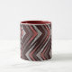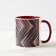 Caneca Padrão ziguezague coral, cinza e marrom.