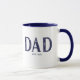 design de caneca de café de Pai com ano estabelecido, com uma fonte azul estampada definida em um plano de fundo branco. Clique em personalizar para editar a cor do plano de fundo!. Visite nosso compro para ver esta caneca em uma grande variedade de nomes de avô.
