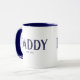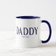 design de caneca de café de Pai com ano estabelecido, com uma fonte azul estampada definida em um plano de fundo branco. Clique em personalizar para editar a cor do plano de fundo!. Visite nosso compro para ver esta caneca em uma grande variedade de nomes de avô.