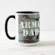 Uma caneca verdadeiramente maravilhosa para o pai militar, com foto real de camuflagem de um uniforme militar como design de fundo. Faz um presente de Dia de os pais excelente! Há também a opção de escolher o estilo e a cor da sua caneca.