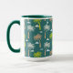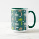 Um meio século, padrão retrô de palmeiras brancas, verdes e castanhas-claras contra um fundo verde-escuro.