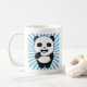 Caneca Kawaii panda. Caneca básica de Kawaii. Café, micro-ondas e máquina de lavar louça. Engraçado design panda no estilo kawaii, com raios de anime azuis ao fundo. Personalize sua caneca original do panda engraçada. Adapte o design do panda.