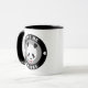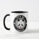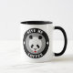 Uma cabeça de panda fofa, num design de disco redondo preto e branco. Com texto que diz: "DÊ-ME" no topo, e "Café" no fundo.