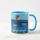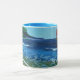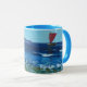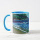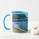 Mug da pintura que fiz para Alohi e Lamaku. Representa a praia de Paniau, no sul de Kohala, com sua Wa'a (canoa de vela havaiana) navegando até a praia.