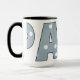 Quem outro merece sua própria caneca especial a não ser a papá! Gráfico adorável que envolve em torno da caneca com a palavra PAPÁ em todas as capitais na luz - azul com bolinhas brancas. Grande presente a qualquer momento.
