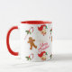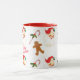 Esta caneca de café com tema natalino apresenta um design retrô/ vintage encantador do Papai Noel, uma bengala de Natal e um biscoito de gengibre. Use esta caneca para todas as suas bebidas quentes de Natal.