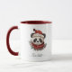 Papais noeis Russos de Panda Feliz Caneca de Natal. Tons de terra de estilo russo, design com um urso branco panda com chapéu de Papai Noel e botânicos de inverno. Texto personalizado.