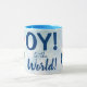 Esta caneca engraçada apresenta um design bonito com o planeta Terra vestindo uma máscara facial e o chapéu de Papai Noel. A legenda diz OY! para o Mundo! Perfeito para injetar humor pandêmico na temporada de festas. Excelente como presente para o Natal ou Chanucá.