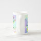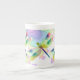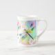 Esta caneca de China de osso das libélulas do Pastel caracteriza minha libélula da aguarela em um fundo digital do fractal da arte.