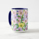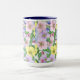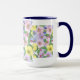 Flores de primavera em cores pastéis bonito aparadas com uma borda azul macia.