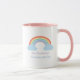 Uma caneca com um arco-íris bonito pastel e suas duas nuvens azuis. Você pode personalizá-lo com um nome e um texto. Será perfeito como presente de professor ou de Dia de as mães!