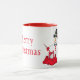 A caneca de café cerâmica é mostrada com um impressão de arte de boneco de neve de Natal festivo, com o texto Feliz Natal. Personalize este item ou comprar como está.