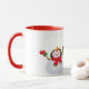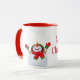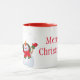 A caneca de café cerâmica é mostrada com um impressão de arte de boneco de neve de Natal festivo, com o texto Feliz Natal. Personalize este item ou comprar como está.