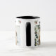 A caneca de Amor, Paz e Joy de Natal com três fotografias e folhas sagradas, bagas vermelhas e vergreens.