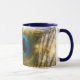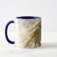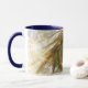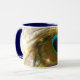 Caneca de férias glamourosa com belas penas de pavão, moinho prateado e espumantes luzes de Natal