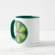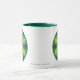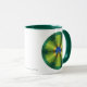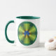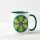 Se você ama as cores de um pavão, este design será perfeito com tons de verde, ouro e azul dispostos de escuro a claro que dão ao círculo um olhar em 3D com algum estilo para se assemelhar a uma pena. Esta caneca está disponível em várias cores e estilos, incluindo canecas de viagem e canecas de cerveja.