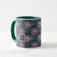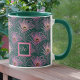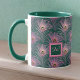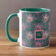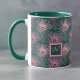 Caneca Penas de Pavão Rosa e Monograma em Verde Profundo