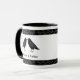 Esta caneca do casamento maravilhosa mostra uma imagem de arte digital de um par de lindos ravens negros virados um para o outro e parecendo que estão se beijando. Eles são pretos com olhos-de-luz e cinzas-bicos e pés. Há também estrelas brancas sobre fundo preto acima e abaixo das aves. Há texto personalizado para que você possa incluir os nomes do casal feliz.