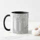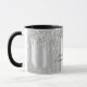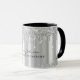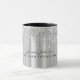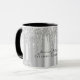 Este modelo de caneca de luxo apresenta folha falsa metálica prateada sob brilho de glitter gotejante e nome e profissão personalizados em fonte manuscrita caligráfica elegante. Detalhes pretos personalizáveis e imagem de fundo personalizada.