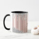 Este modelo de caneca de luxo apresenta folha metálica falsa rosa dourada e rosa bege sob brilho cintilante. Detalhes pretos personalizáveis e imagem de fundo personalizada.